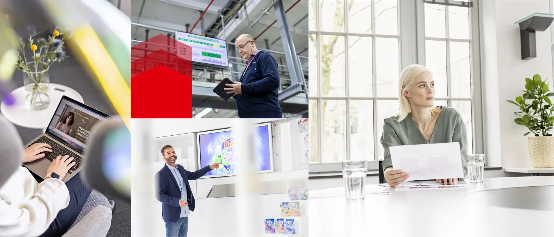 다양한 헨켈 직원들의 얼굴. 그들은 자신감을 보이며 미소를 짓습니다.