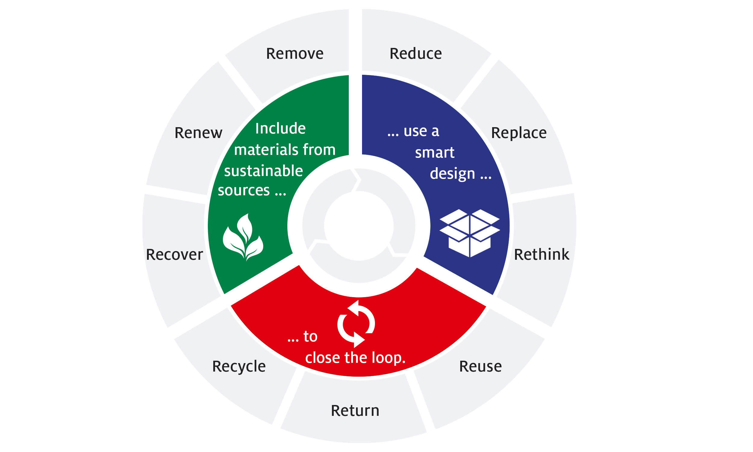 Henkel’s new framework for sustainable packaging reflects the three key phases of a circular value chain. Each of these phases is translated into specific actions: