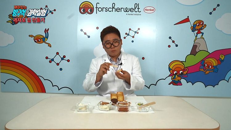 영상은 ‘음식으로 접착제 만들기’를 주제로 어린이 시청자를 위한 흥미롭고 유익한 내용으로 구성됐다. 가정에서 쉽게 구할 수 있는 밥, 밀가루, 곰젤리, 풍선껌을 이용해 접착제를 만든 뒤 각 음식물의 접착력 겨루기와 과자 집 짓기 등 실험과 놀이방법을 소개하고 있다.