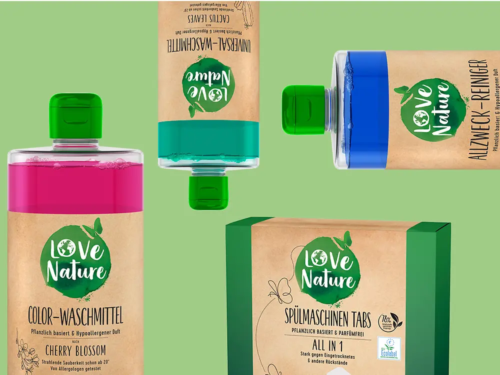 Following the approach of developing prototypical, sustainable innovations to market maturity in a short period of time, the Love Nature team relies on intense co-creation with consumers, sustainability-minded influencers, and sustainability experts. Just recently, their first brand launch was announced: The Love Nature brand offers a range of products of washing, dish washing, and cleaning. The products are plant-based and certified by renowned labels such as the EU Ecolabel or ECARF. Its formulas contain high levels of ingredients of natural origin, and the products are available in a resource-saving and sustainable bottle fully made of recycled plastic. In addition, Love Nature offers products at refill stations in selected stores in Germany.
