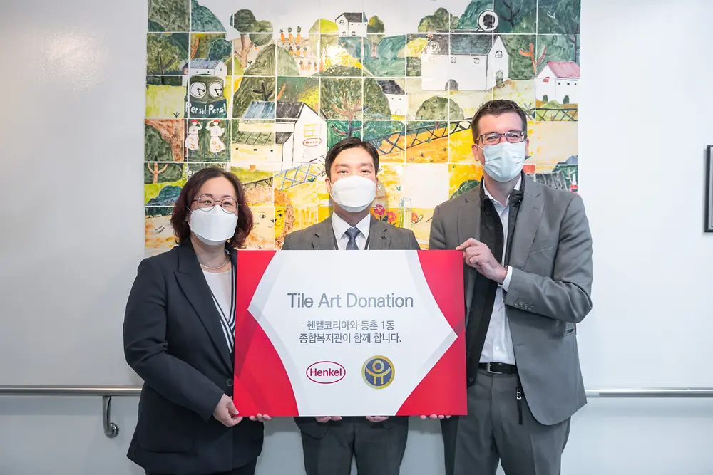 글로벌 생활·산업용품기업 헨켈코리아는 마크 돈(Mark Dorn) 아태지역 사장이 참석한 가운데 등촌1종합사회복지관(관장 강형태)에 임직원이 직접 제작한 타일 벽화를 기증했다고 19일 밝혔다.