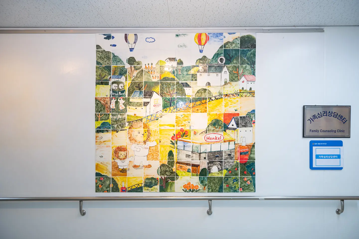 이번 비대면 벽화 봉사 활동은 헨켈 임직원들이 지난 3개월여간 직접 채색한 타일을 한 장 한 장 모아 하나의 그림으로 완성하고, 환경 개선이 필요한 공간에 벽화를 시공해 활기를 제공하고자 했다.