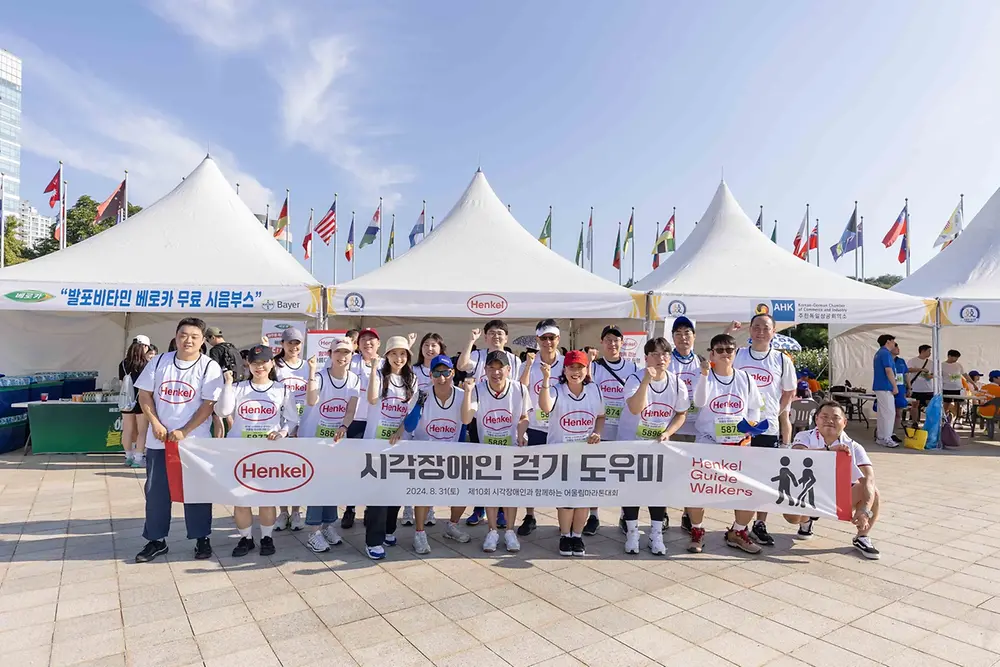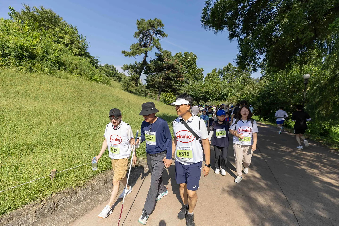 헨켈코리아 임직원들은 장애인과 비장애인이 함께 걸으며 건강증진과 장애 인식 개선을 도모하고자 마련된 ‘제10회 어울림 마라톤 대회’의 가이드 워커로 참여해 시각장애인들과 동반주자로 함께 걷는 봉사활동을 진행했다